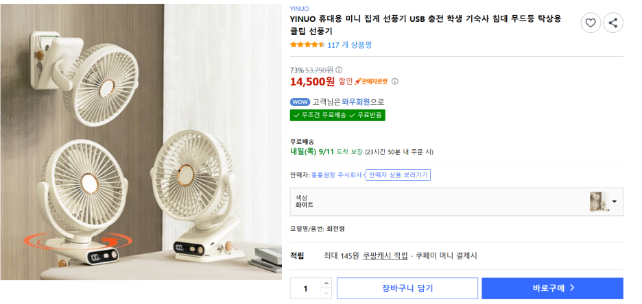 쿠팡에ㅐ서 판매하는 클립형 선풍기